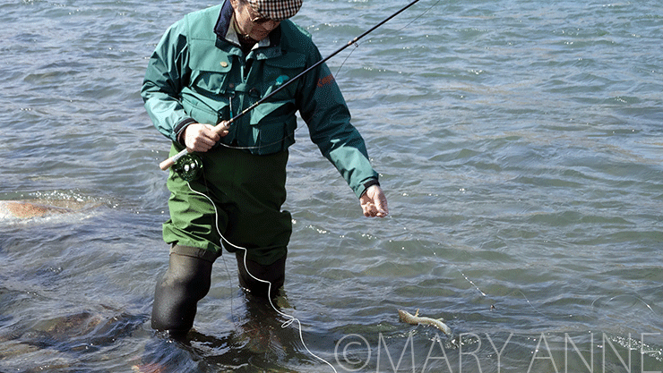 A small brown trout took the Peacock Queen tied on the hook of TD6 Silver Sedge #10.