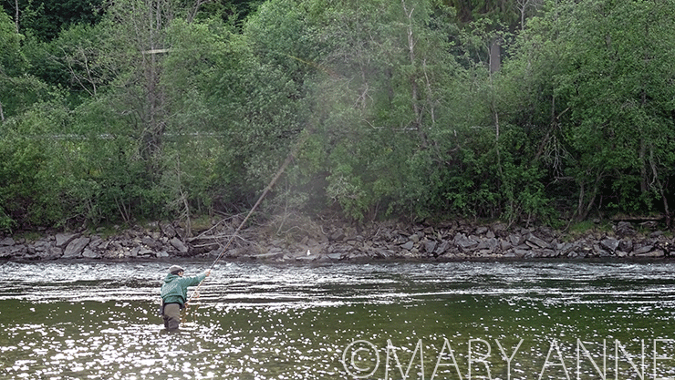 お湿り程度の雨、僅かな増水、サーモンがちょっと動いてちらほら釣れ始めました。