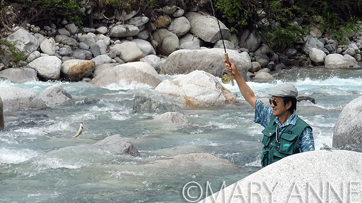 この川も梅雨時で水量が多く、ちょっと釣りにくい状況ですが、何とかイワナが顔を出してくれました。