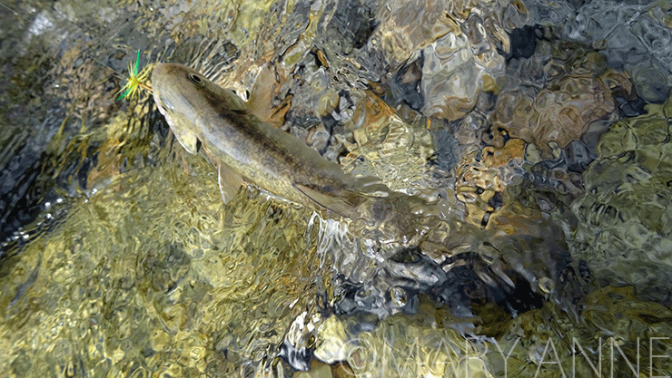 Char liked this new dry fly already in the clear mountain stream.