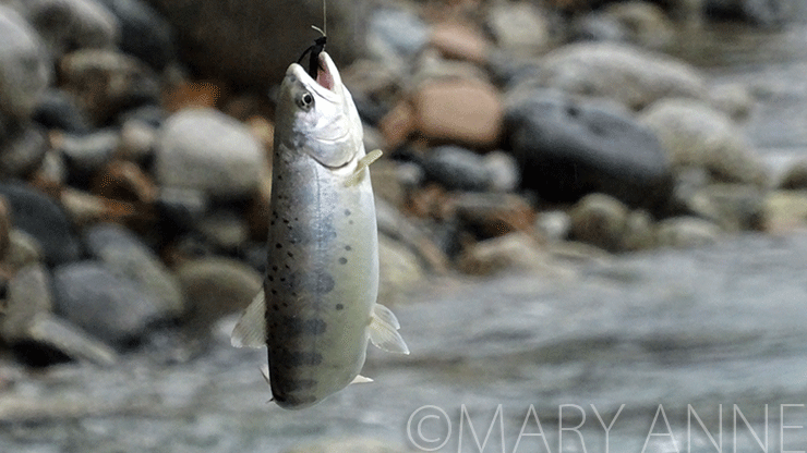雨まじり、ウェットで落ち込みを狙ったら、元気に飛びついてきたのはヤマメ。