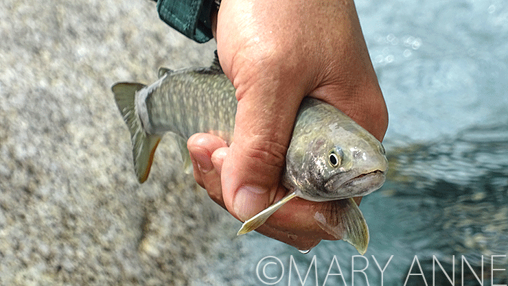 大きな石がゴロゴロあって、深い淵と早瀬が交互に現れ、川虫が豊富な渓は、やはりイワナも立派ですね。
