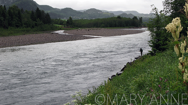 他に行く宛もないし、あっちだこっちだ・・と動いていると、サーモンとすれ違う可能性が高くなるし・・。