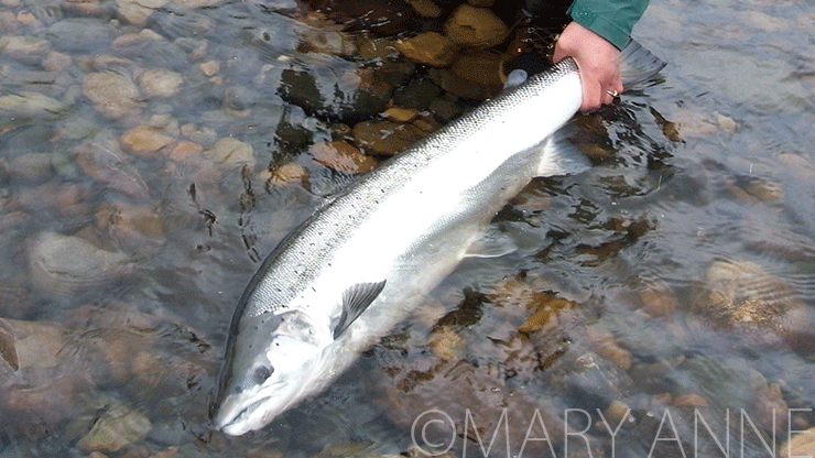ここ数年、釣れない年が続いているんだけれど、サーモンの遡上の季節がズレたせいなのか、釣り人が下手になったせいなのか・・。