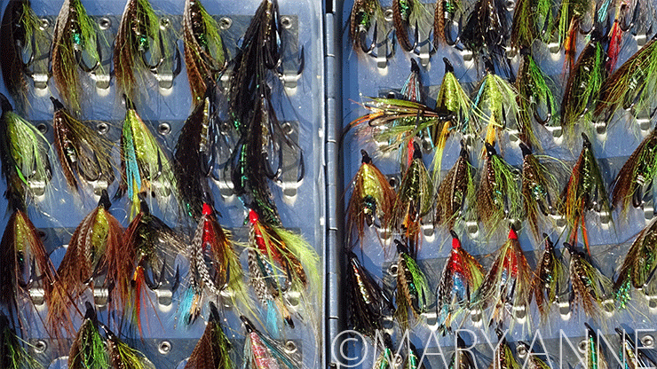 Flies tied on double hooks sized #4 to #12 must be good for mid to low water conditions.
