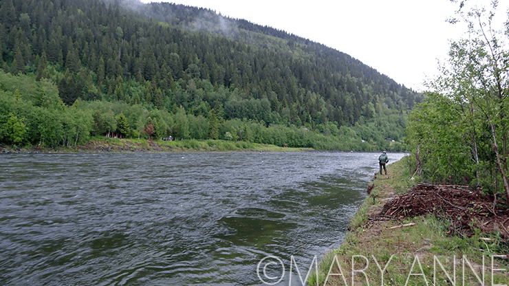 水位によっては、サーモンの大群が岸寄りにやって来た時、誰かに掛かりますが。