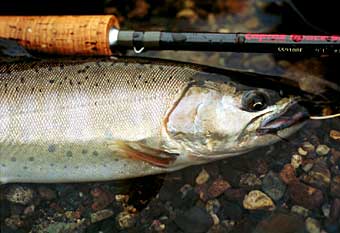 更に釣り下った時、流芯脇からフライが移動する瞬間、ドカンと強烈な衝撃が伝わってきた。
