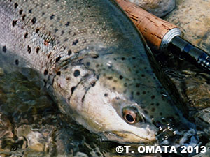 フライはハイブリッドチューブに巻いたオリジナルフライで、流れ込みから縦ターンさせていく。