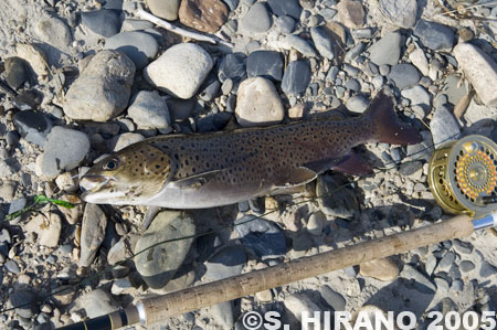 またオノン川には当初想定していなかった好ターゲットがいた。アムールトラウトである。学術的にはレノックとの区別がはっきりとはしていないらしいが、アングラーとしてみればレノックとの違いは歴然である。まずレノックより全体的にプロポーションが良く、口の形も体の模様も違う。そして何よりそのファイトはレノックより強烈である。今後オノン川を訪れるフライマンにとって、70cmオーバーのアムールトラウトはメーターオーバータイメン以上の存在となるかもしれない。
