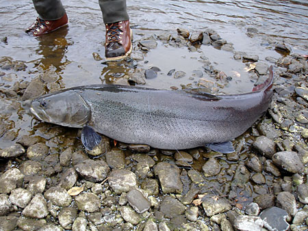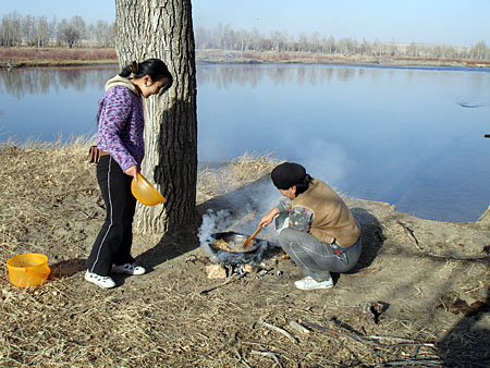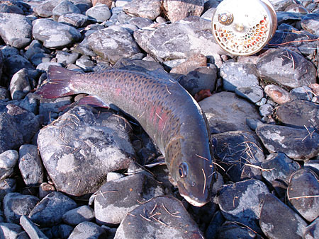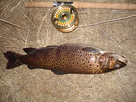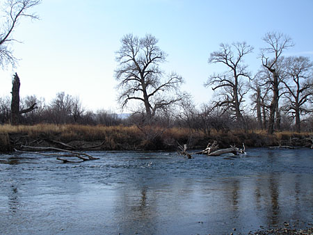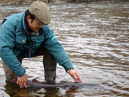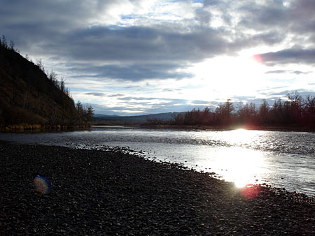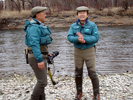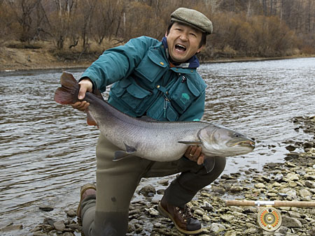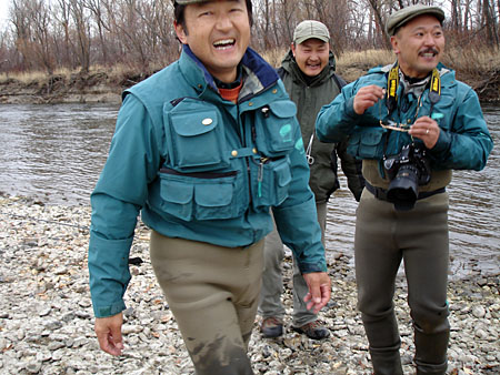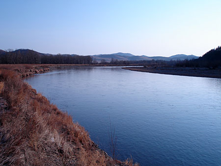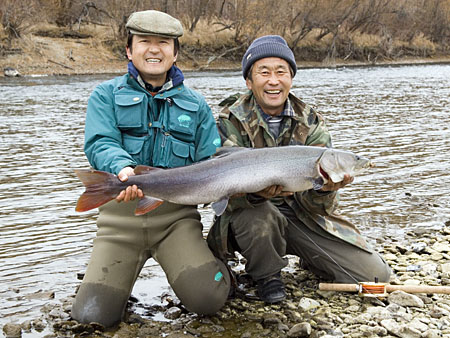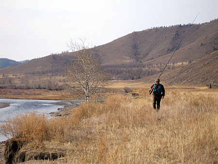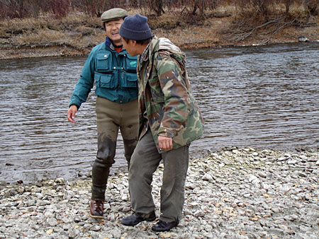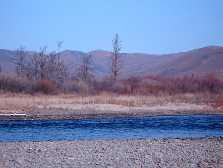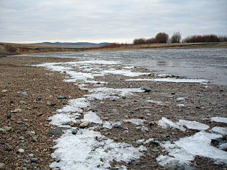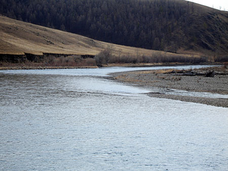 オノン川の晩秋。予想通り、気温は氷点下。ローズマリーは凍り、マウスフライも凍ってグリップに張り付いた。